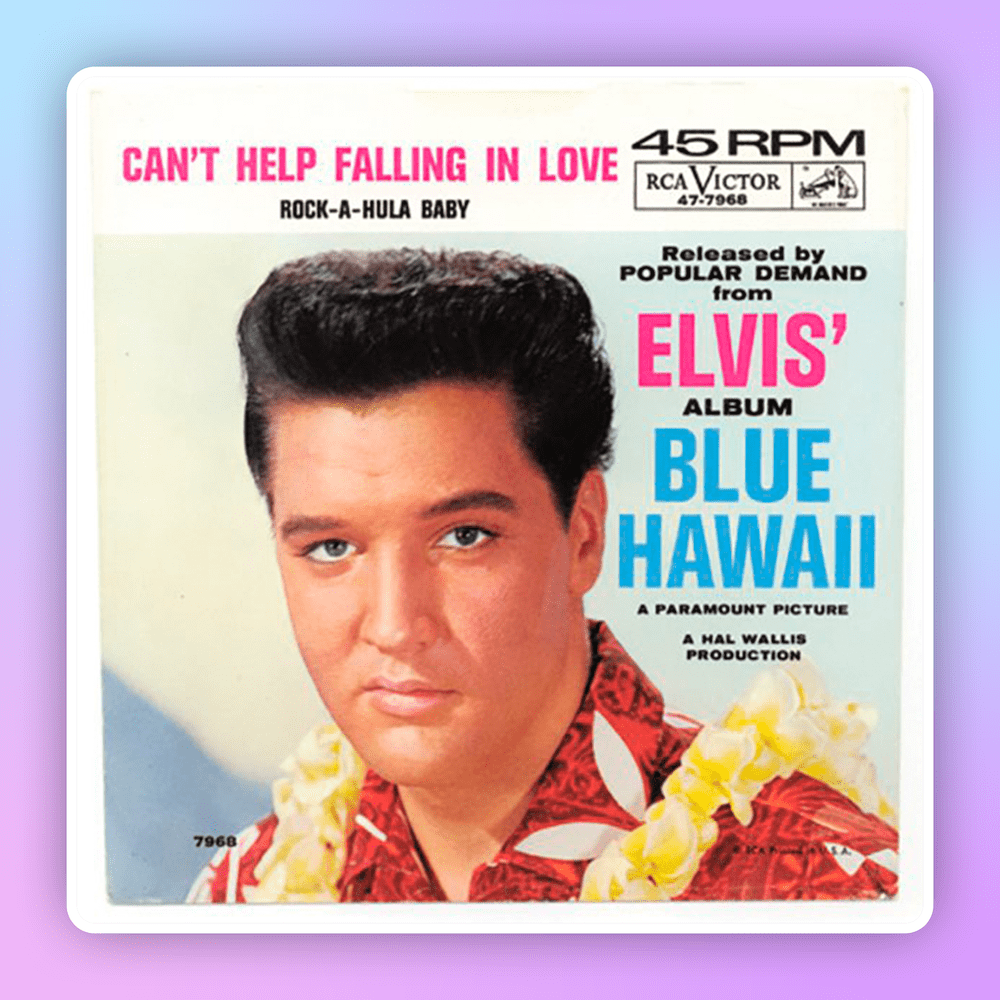 “Can´t help falling in love with you” (no puedo evitar enamorarme de ti), es una canción compuesta en 1961 por George David Weiss, Hugo Peretti, y Luigi Creatore para la película “Blue Hawai” (traducida como “Hawai Azul” en Hispanoamérica y en España como “Amor en Hawai”), la película más exitosa de Elvis Presley.